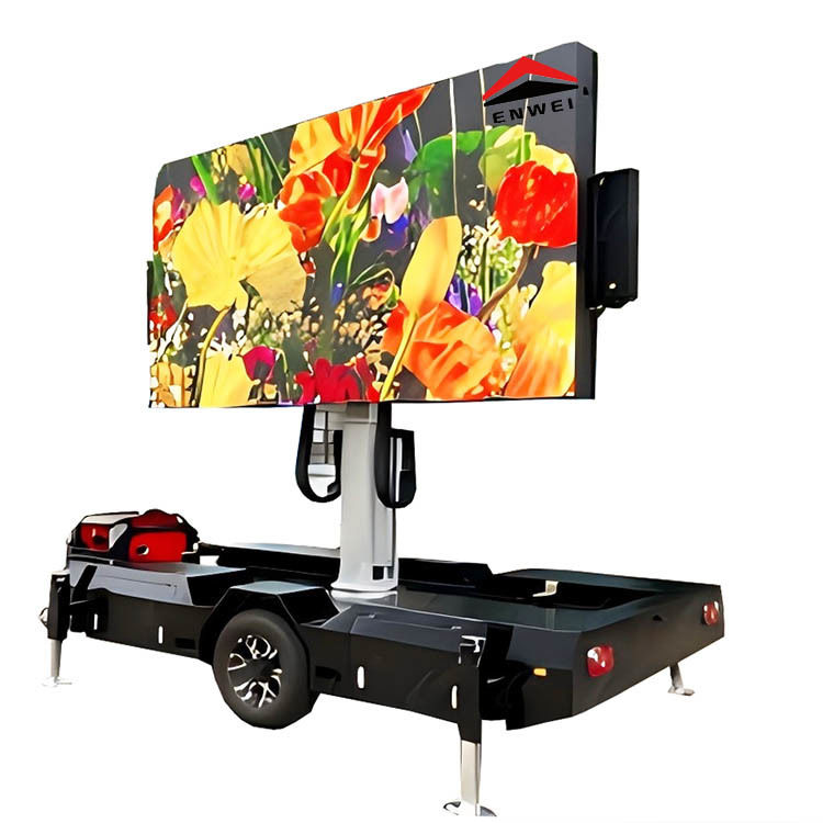 De LED elektronische reclame display trailer beschikt over high definition en hoge helderheid, in staat om heldere beelden te leveren. Zelfs in direct zonlicht kan het scherm het beeld duidelijk weergeven. Ondertussen is de LED display trailer uitgerust met een hydraulische mast en rotatiesysteem, waarmee de hoogte en hoek van het scherm kan worden aangepast, waardoor een naadloze weergave van 360° wordt bereikt. Het heeft een sterke stabiliteit en blijft stabiel, zelfs in buitenomgevingen.