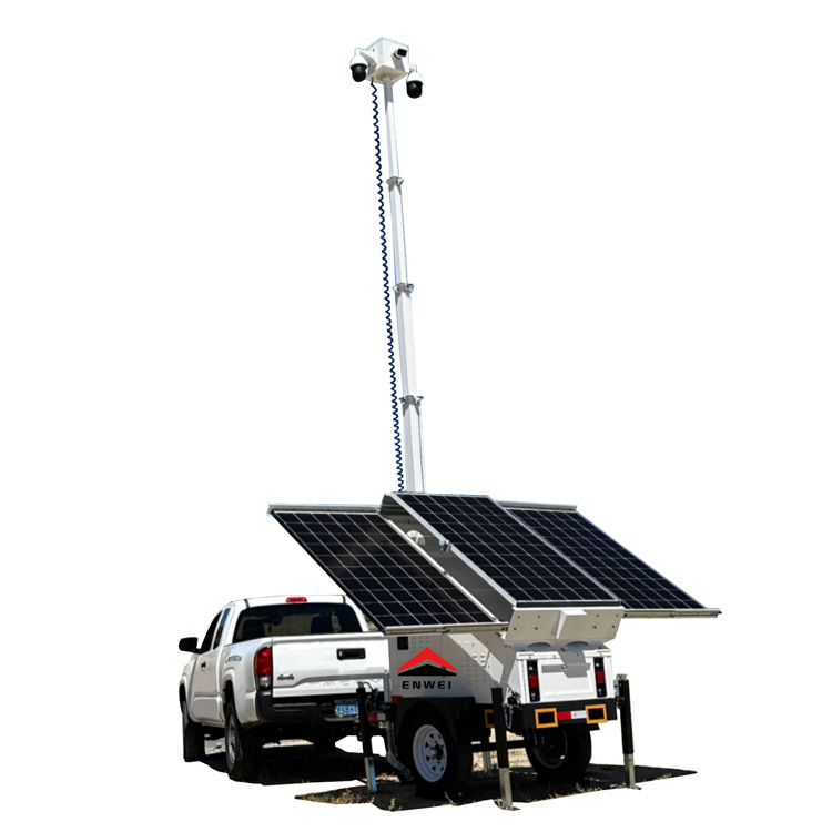 Zonne-beveiligingstrailer met 7m elektrische mast voor bouwplaatsen