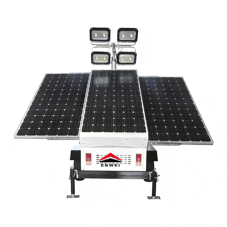 The mobile solar lighting trailer integrates a solar power generation system, an energy storage system, an intelligent control system and an efficient lighting system. It is a portable lighting device that provides high-brightness illumination for areas without reliable power supply or those that require frequent movement. During the day, solar panels absorb solar energy, and at night, they convert the absorbed solar energy into electricity.